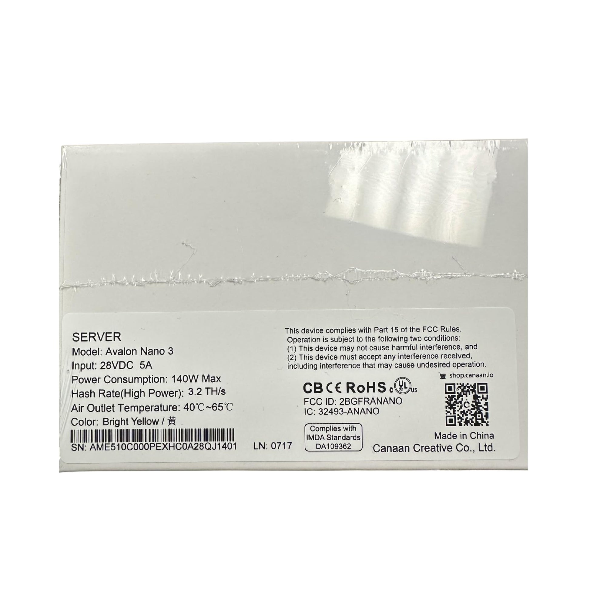 Details: Introducing the Avalon Nano 3, a compact Bitcoin miner designed by Canaan for both novice and experienced crypto enthusiasts. This efficient device redefines at-home Bitcoin mining, offering a perfect blend of performance, convenience, and affordability. As a state-of-the-art ASIC miner, the Avalon Nano 3 is an ideal choice for those looking to explore the world of crypto mining with minimal power consumption and quiet operation. The Avalon Nano 3, a member of the distinguished Canaan miner family, has a hashrate of 3.2TH. With a power supply included, it operates at just 140W, ensuring low power consumption and cost-effective crypto mining. Its quiet operation, with noise levels ranging from 33–36dB, makes it suitable for any home environment, allowing you to enjoy the benefits of mining without the disruption of loud equipment. Equipped with WiFi and integration with the Avalon Family App, this miner offers a seamless plug-and-play experience, making it accessible even for beginners. The portable design further enhances its appeal, providing flexibility for those who wish to mine in different locations or settings. The heater mode functionality adds value by doubling as a Bitcoin miner heater, delivering dual benefits with one device. The Avalon Nano 3 is perfect for solo mining, catering to Bitcoin hobbyists and tech enthusiasts who appreciate the thrill of independent mining ventures. As a BTC solo miner, the minimalist design and sleek black finish of the Avalon Nano 3 make it an attractive addition to any tech setup. Whether you are a crypto beginner or a seasoned Bitcoin enthusiast, the Avalon Nano 3 offers a rewarding and efficient mining experience. Embrace the future of crypto mining with this exceptional Bitcoin mining hardware and join the community of crypto miners who are shaping the future of digital currency.