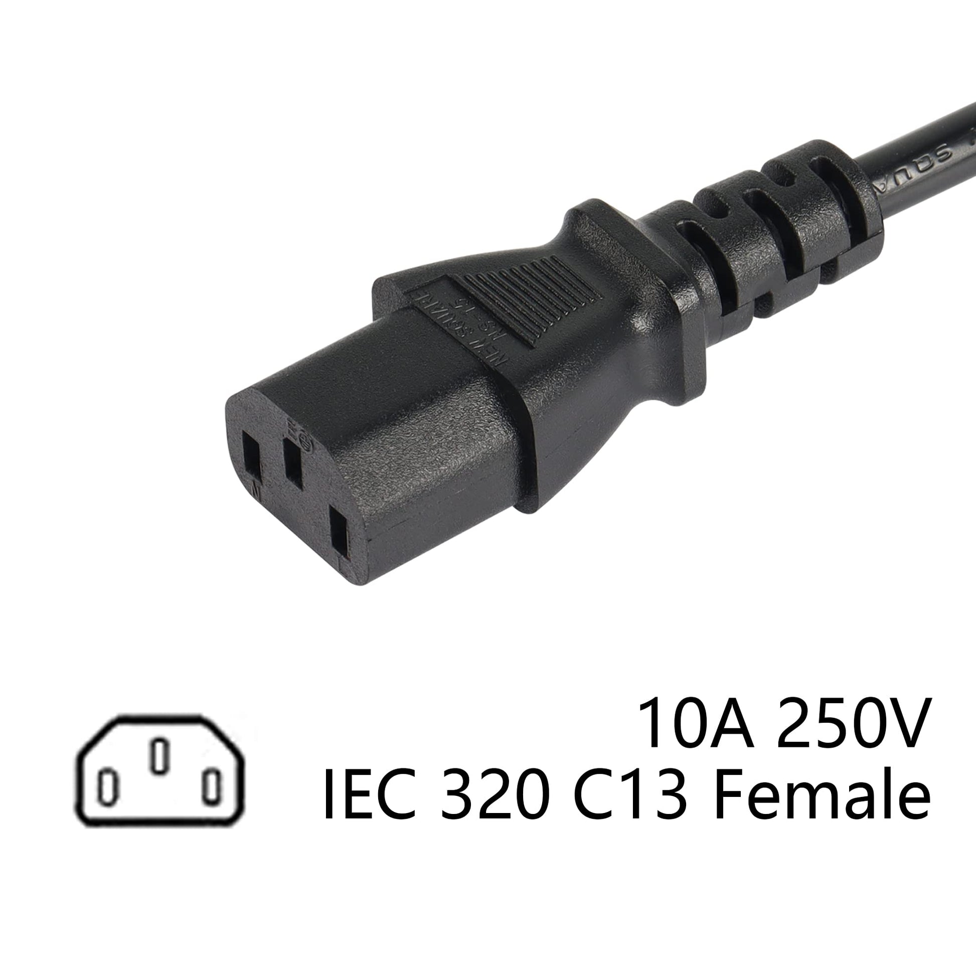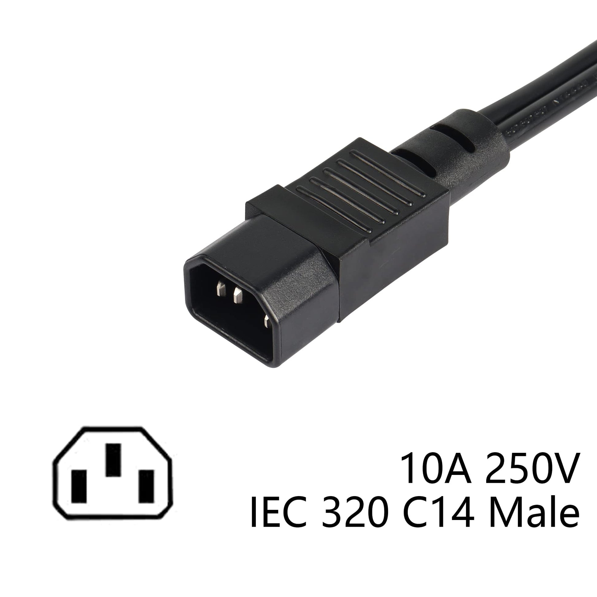 - The AC C14 outlet short power extension cord is rated at 10A 250V(C14);10A 250V(C13);10A 125V(NEMA 5-15R) and supports common voltage power requirements for a home or office,stage.