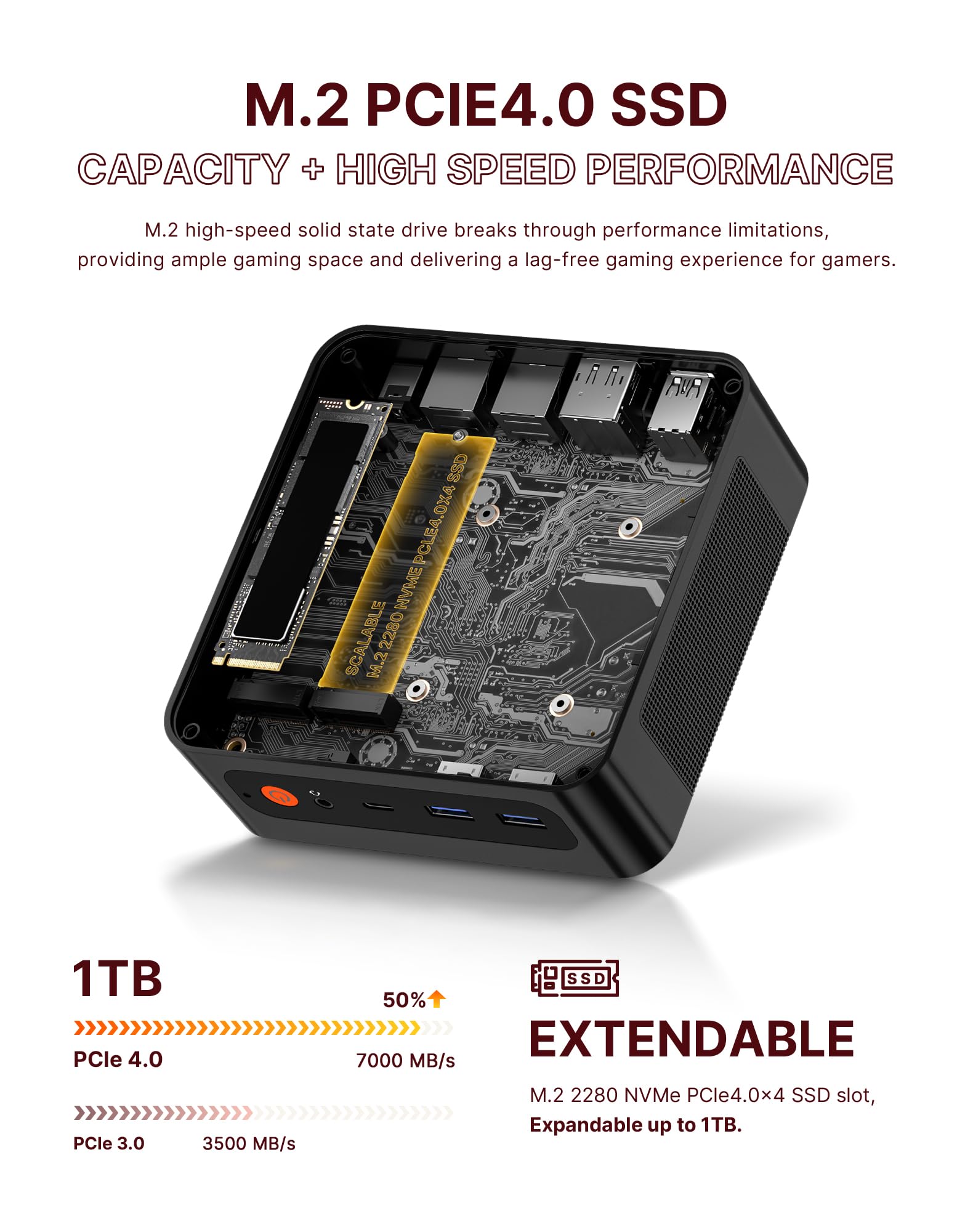- 【 Free Capacity Expansion 】 The mini computer is equipped with up to 32GB DDR5 6400Mhz, which can respond to your commands faster. The built-in 1TB M.2 NVME PCIe 4.0 SSD storage space is sufficient to accommodate system files and a large number of games, with excellent read and write speeds greatly reducing your startup time. Dual channel design, M.2 NVME PCIe 4.0 SSD supports upgrading to 4TB (2x2TB).