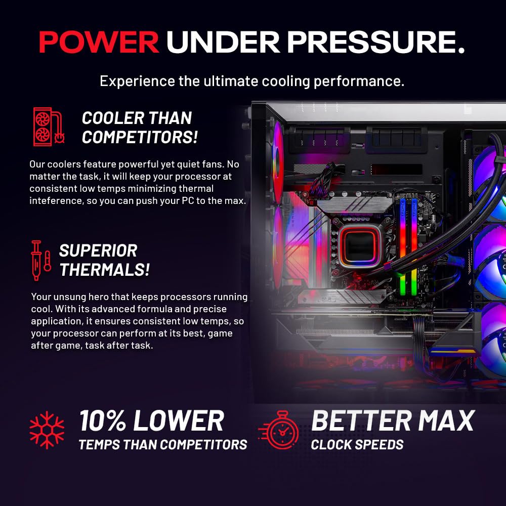 - High-spec AIO liquid coolers used, delivering unmatched cooling performance for a perfect operational experience and unparalleled cooling performance. With hardware unrestricted by temperature limits, you can unleash its full potential. Whether gaming, creating, or working, you'll never suffer from thermal throttling again. | Skytech Legacy Gaming Case with Tempered Glass, White | 1 Year Warranty on Parts and Labor | Free Technical Support | Assembled in the USA