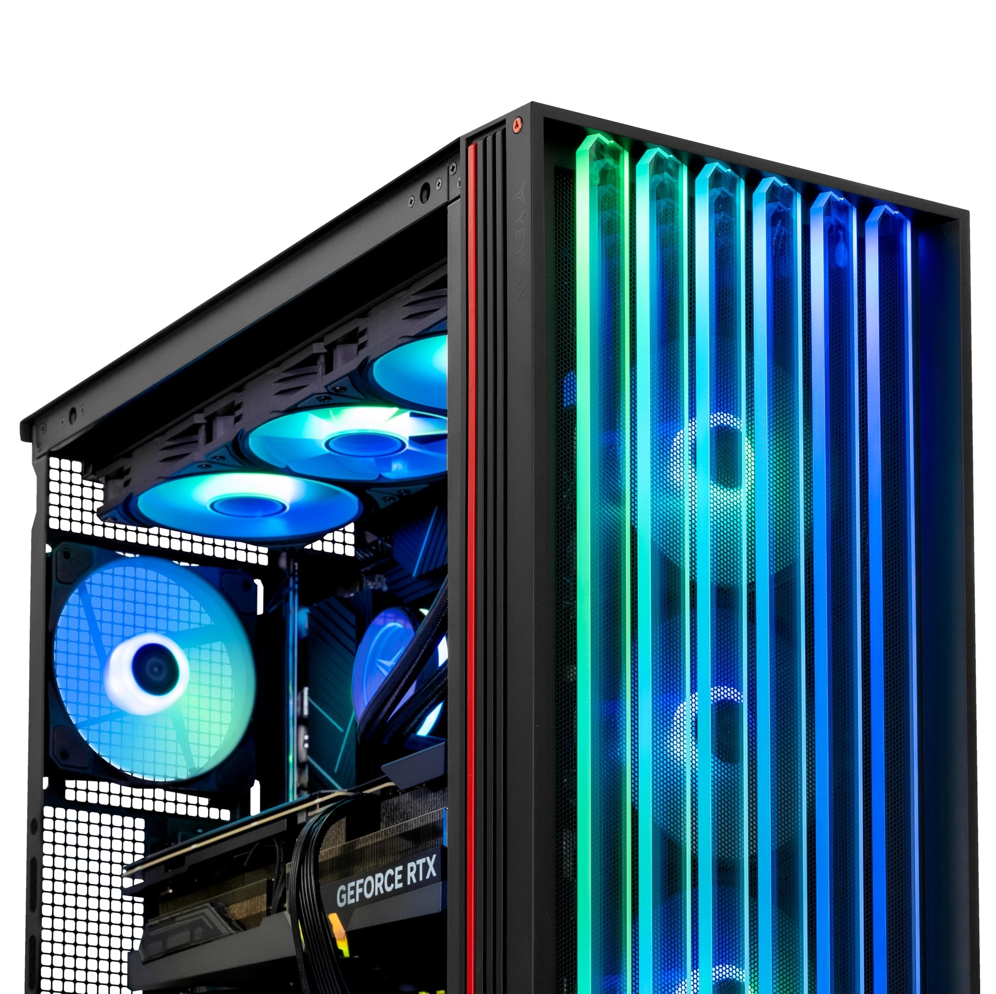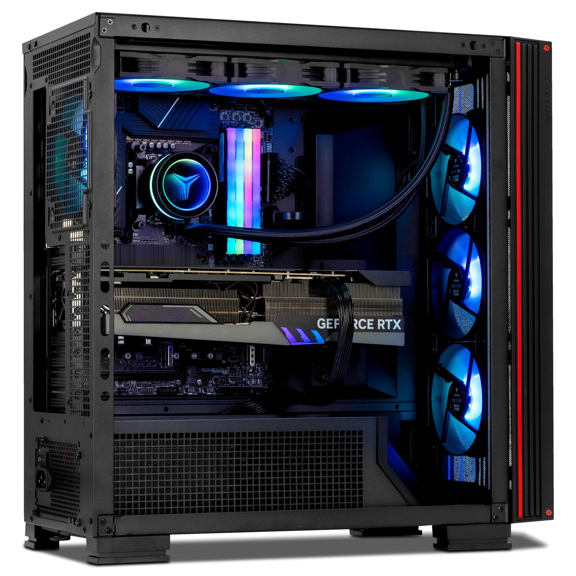 - 【CASE & POWER】 YEYIAN Mirage X Gaming Computer Case | AIO 360mm Liquid Cooling System | 7 x ARGB System Color Adjustable Ring Fans | 1000W 80+ PLATINUM Power Supply